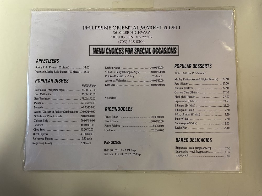 Philippine Oriental Market & Deli (POM AND MORE) Menu
